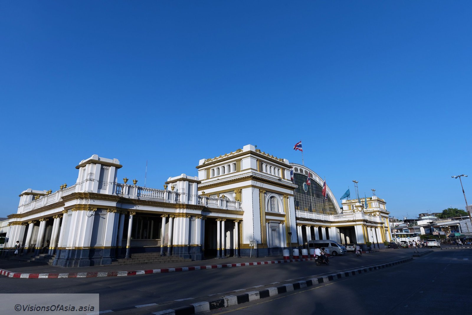 Hua Lamphong station’s construction started in 1910, at about the same time that many European train stations were erected. Although railways were still in their infancy, King Rama V launched railways in Thailand already since 1891. At the same time, another Asian power, Japan, also raced to adopt European technology to modernize its society. Of course, the architect building the train station was European too, and more precisely, Italian, Mario Tamagno (more on his creations here). Being Italian, obviously, he permeated his construction with neo-renaissance style (he also built a number of other landmarks of Bangkok, see the link above).