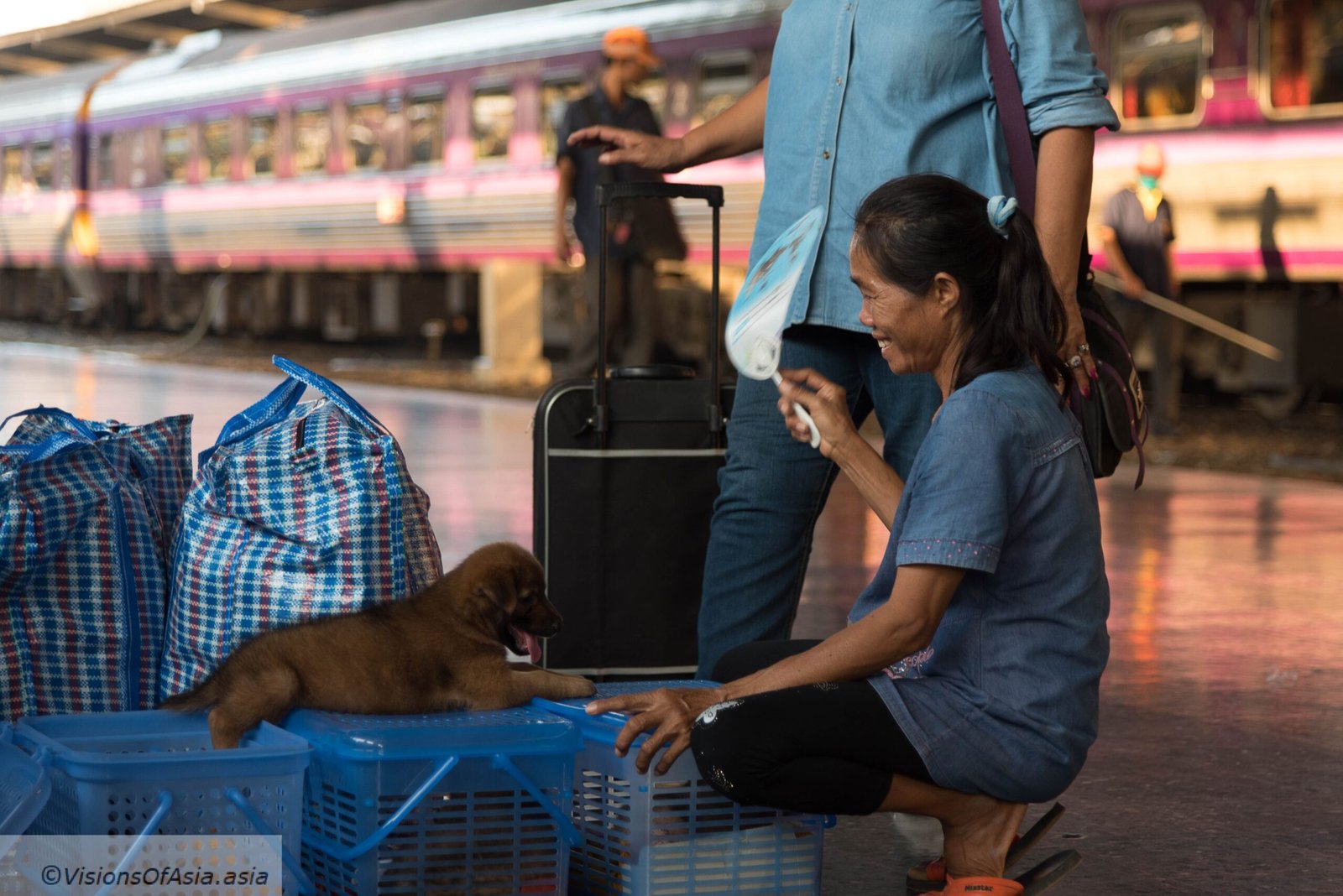 Focusing on the people in the station can also provide interesting photographic opportunities and cute scenes as this lady fanning her puppy.