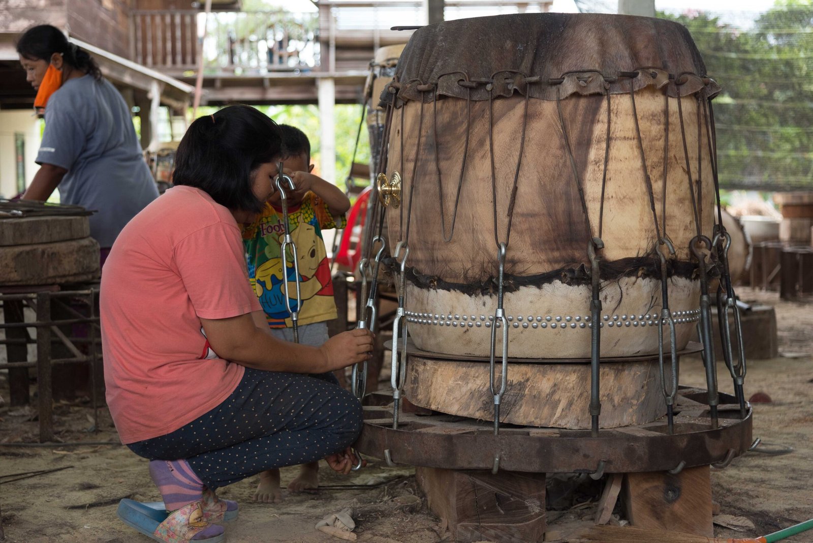 While not very known, it is rare nowadays to still see a traditional craft being performed at various stages of development. During my visit in Ekkarat, back in 2016, I was able to see all the stages of a drum making (ok, not the finition).