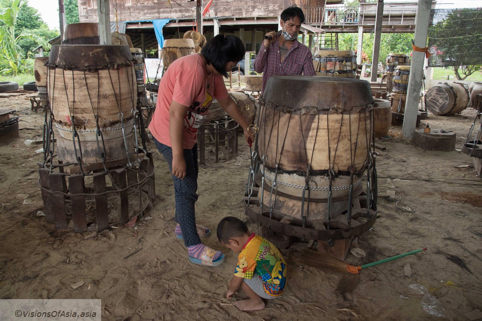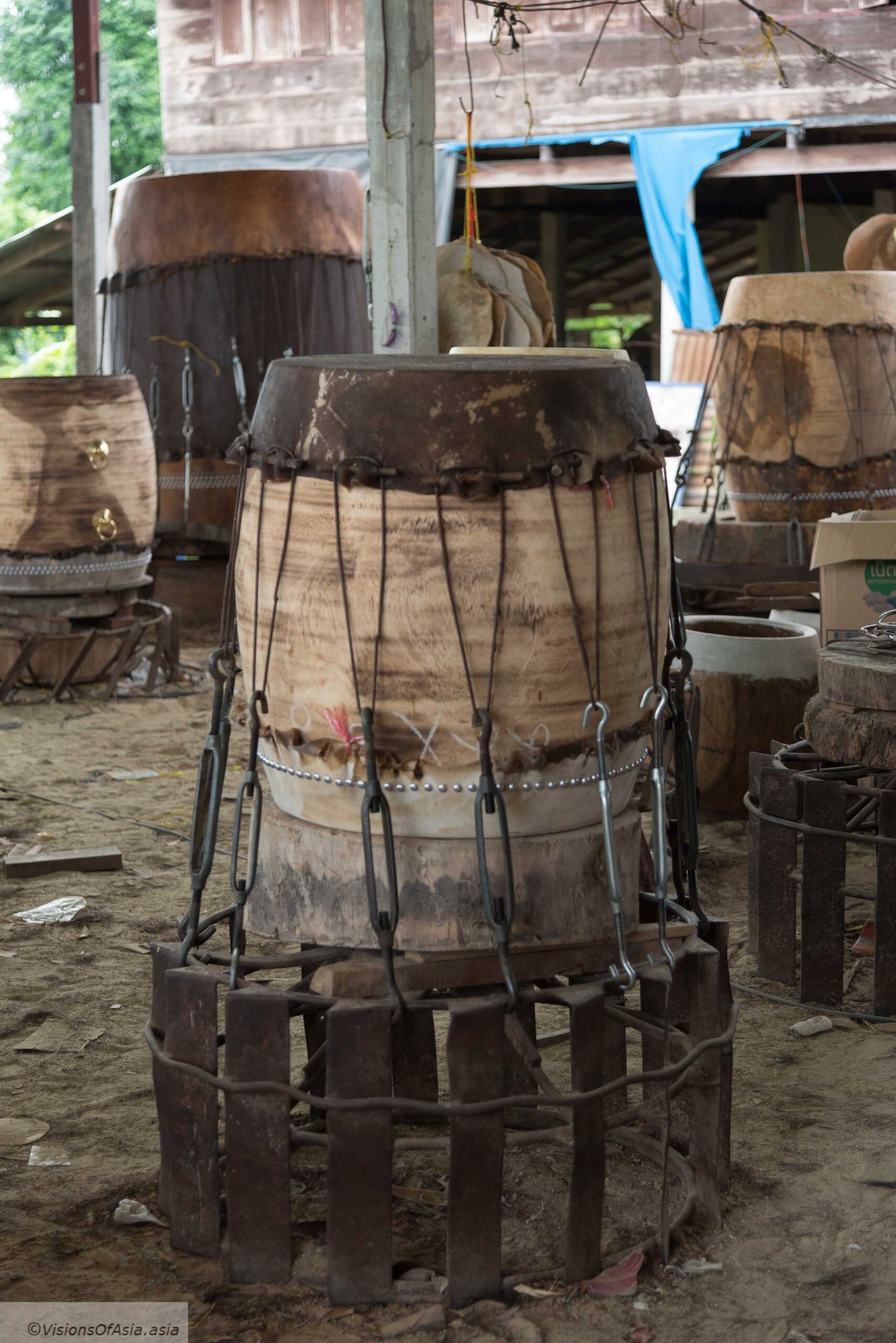 In a previous post, I talked about Wat Sanam Chai, in the province of Suphanburi. When you are there or in Ayutthaya, it does not take much time, to go to Ekkarat drum manufacturing village.
