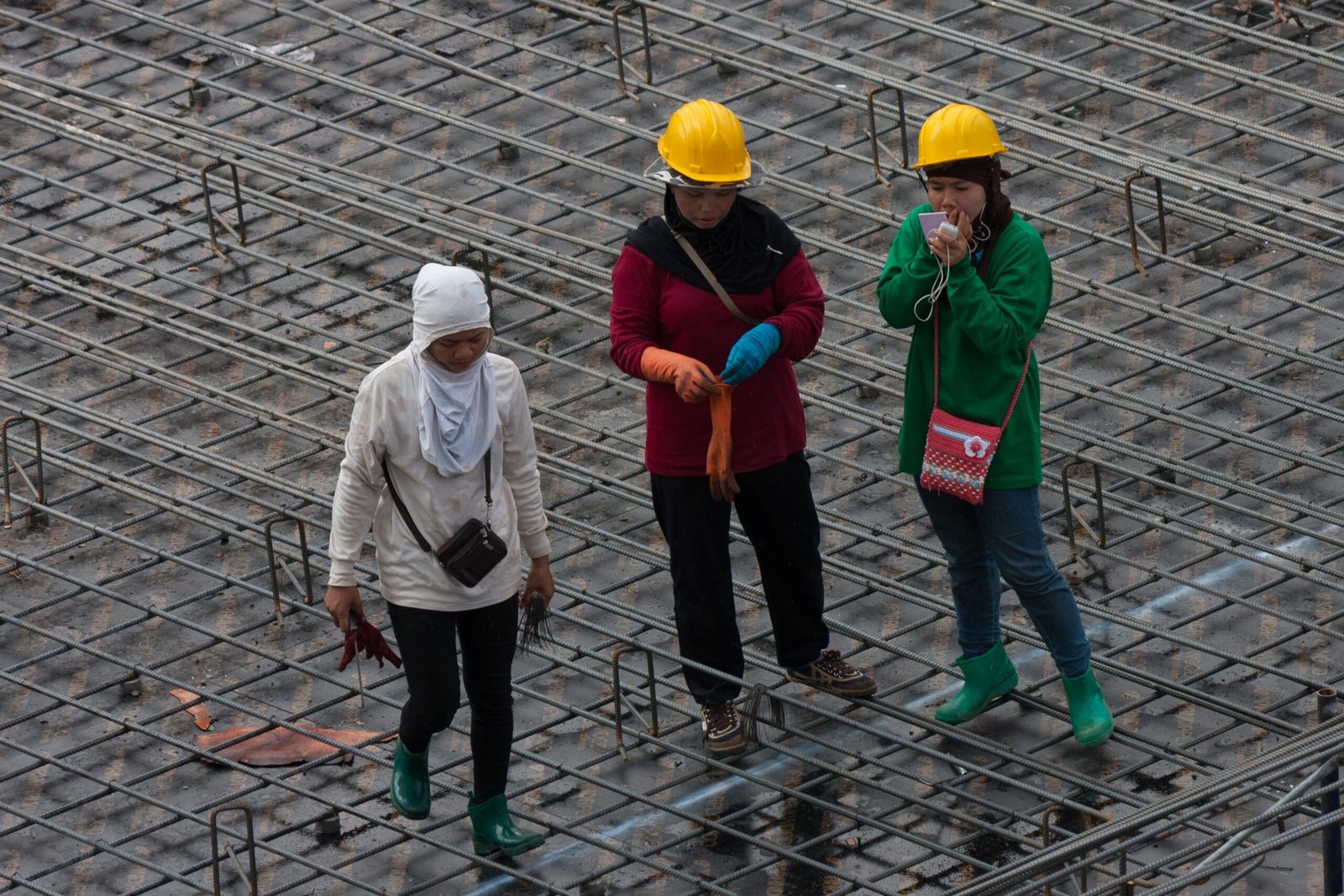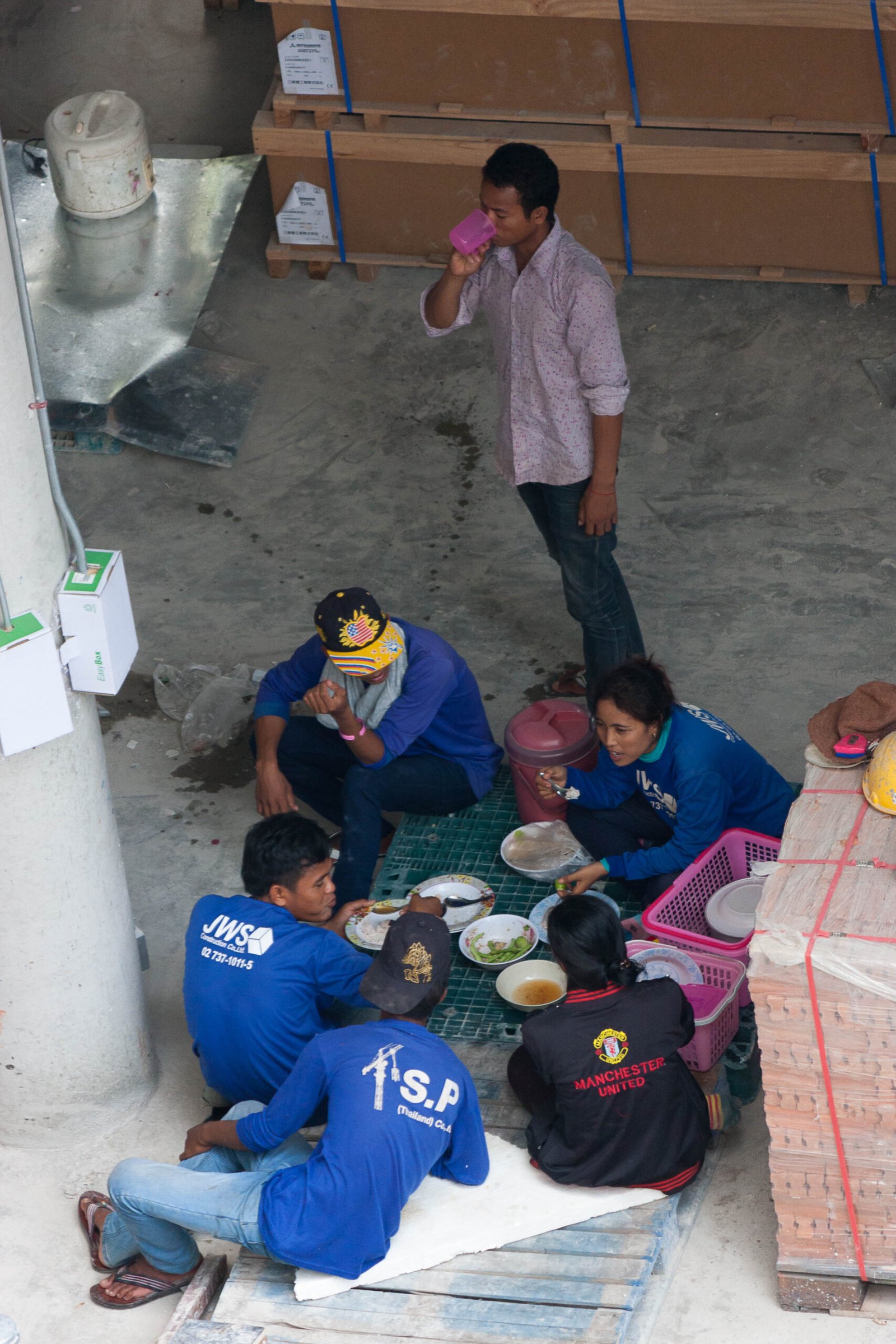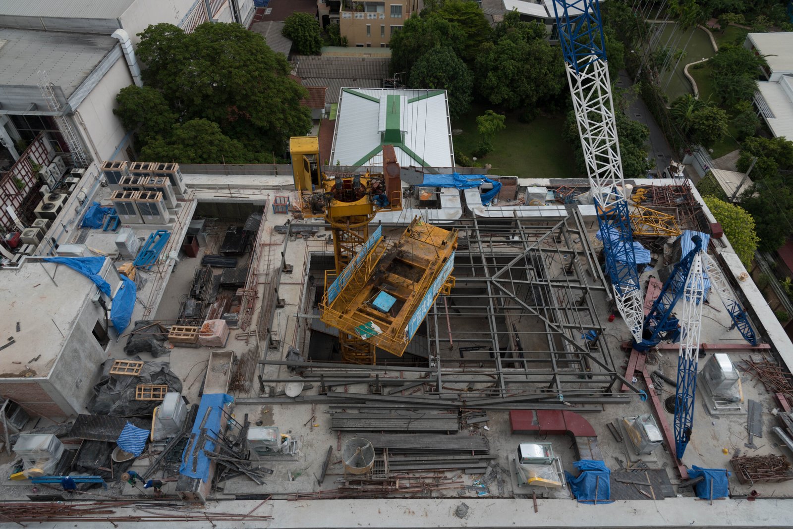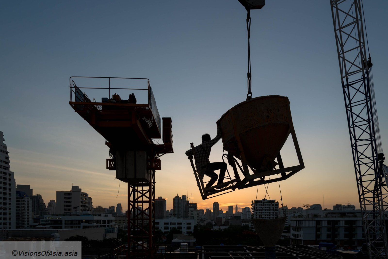 This project started when I was living in Bangkok, in the posh area of Thonglor at soi 17. Just next door to my condo, in 2013, they started destroying an old house to make way for a new construction. As I had an unparalleled view from above, I decided to follow the progress of the construction. The original was to make it a sort of timelapse of the changes on the construction site, but with time, the real interest focused on the workers. Then it became the story of how a mall was built, namely “the Commons” mall in Bangkok. And more largely, a documentation of the working conditions on Thai construction sites and the workers along with the quirks and peculiarities of work in Thailand.