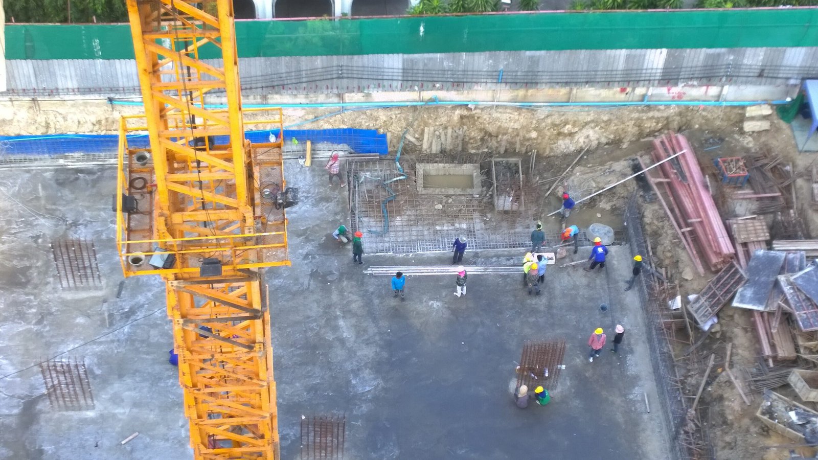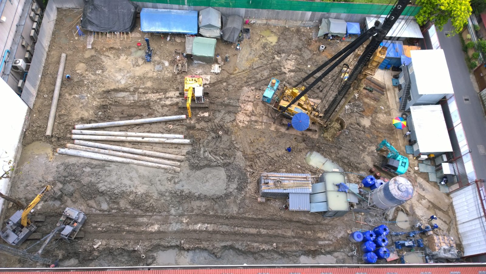 Once the old house was torn apart and the rubble taken away, started the extensive work of laying the foundations. As a reminder, Bangkok is built on a former swamp, and the land is foundering by an average of 6 cms a year (huge by geological standards!). Hence, before building the main structure, the construction company kept on driving into the ground huge cement stilts to ensure the stability of the final construction.