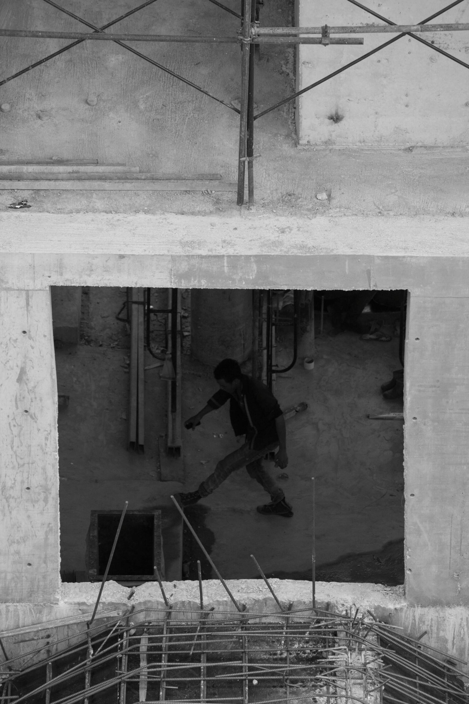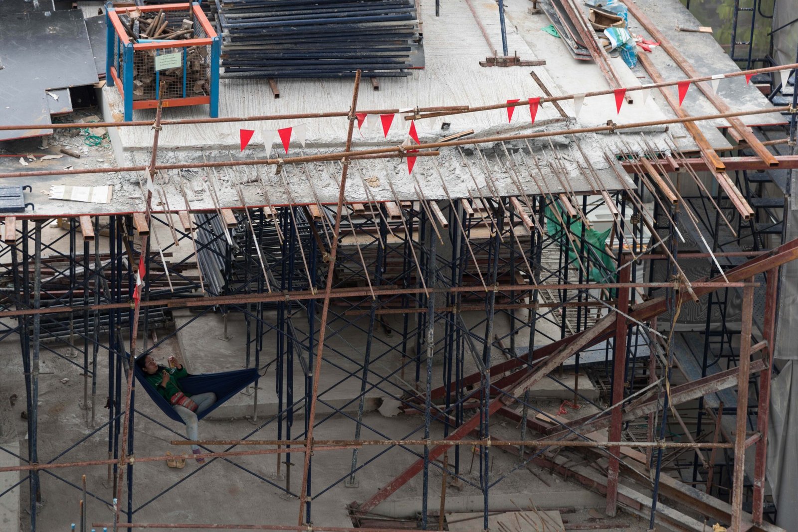 Often, this construction site offered quite quirky moments. From a lady taking a rest in a hammock hung on the scaffolding… to guys playing in flip flops on a construction site.