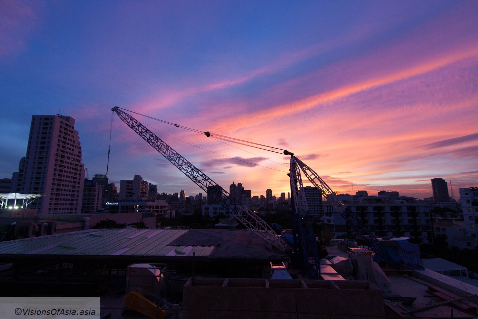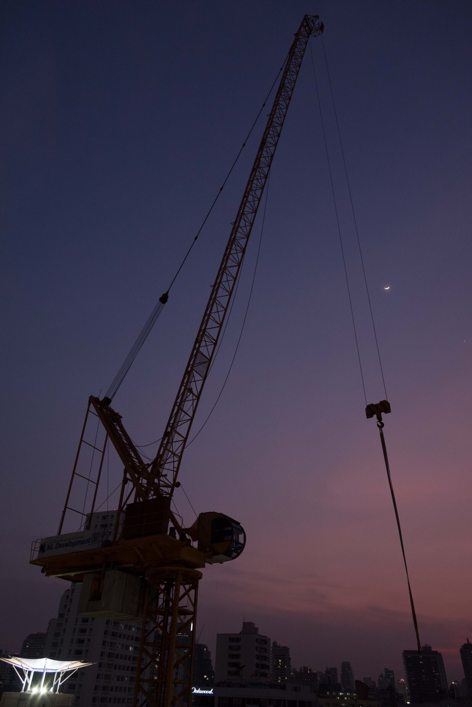 In a second stage, the workers started preparing the infrastructure for the construction work properly said. This involved mounting a crane. On that occasion, I had the utter surprise of seeing workers climbing up in the branches of a crane without any safety gear. But this was only the start of an incredible few years witnessing how the Thai construction workers got their job done.