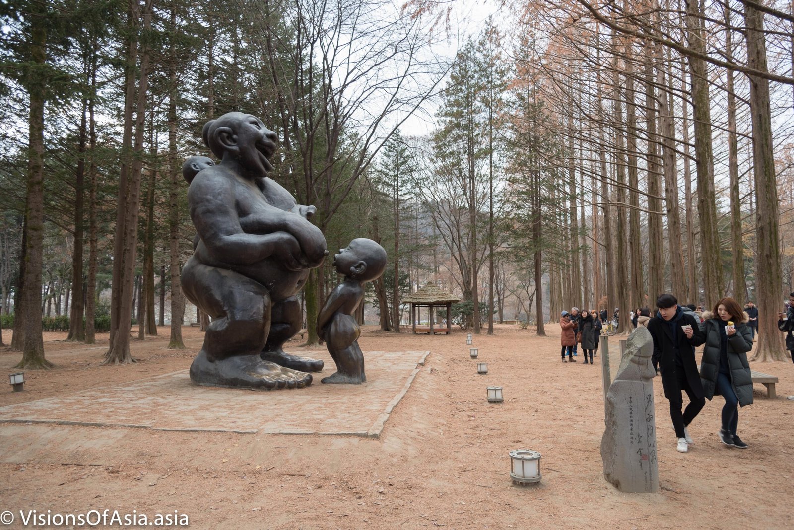 Nami island is a little locality in the neighbourhood of Seoul. It shot to fame when the Korean drama “Winter Sonata” became an Asian (and in a lesser measure worldwide) hit in 2002. Since then, the island has sought to build on the fame brought by this unexpected notoriety by creating an environment catering to the tourists, but also with its own personality. As an example, they try to showcase the art of local artists, making the place something catering to K-drama afficionados as well as to hipster bloggers.